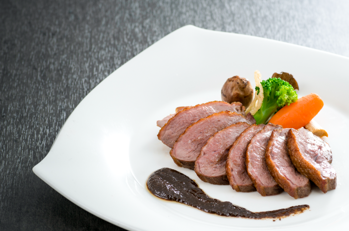 A poêlé of duck breast meat with fruity, black garlic from Aomori